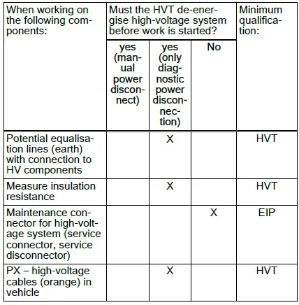 - Activities for which the vehicle must be de-energised and