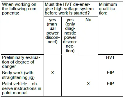 - Any work on the high-voltage system, or on systems which