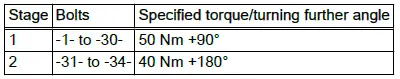 -1-. To do this, tighten bolts -2- in specified tightening sequence