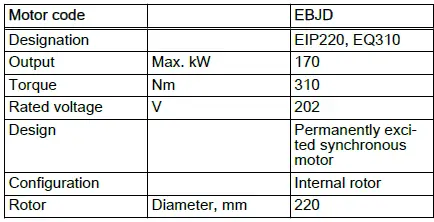 Motor designation, front motor, all-wheel drive