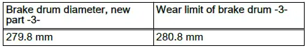 Wear limits of rear axle brake linings/brake drums -1-